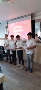 W internacie już widać, że zbliżają się święta Bożego Narodzenia. Nie tylko udekorowaliśmy stołówkę oraz hol i ogłosiliśmy konkurs na najpiękniejszy wystrój sali mieszkalnej, ale również uczestniczyliśmy w przedświątecznym spotkaniu, podczas którego swoje talenty zaprezentowali: Oleksandr Andriichuk, Veranika Kliuchnikava, Alina Kutenets, Yehor Kryvdenko, Andrii Kurchak, Zakhar Suraiev i Uladzislau Trybukhouski. Było pięknie i nastrojowo. W organizacji i w przygotowaniach wzięła młodzież pochodząca z Ukrainy, Białorusi i Polski pod opieką wychowawców: Renaty Połowniak, Agnieszki Rychlickiej, Małgorzaty Mikody, Katarzyny Bartosz, Izabeli Fiedorowicz oraz Gracjana Wośko. Spotkanie swoją obecnością uświetnili dyrektor Wiesław Solarewicz oraz kierownik do spraw gospodarczych Andrzej Dziok.